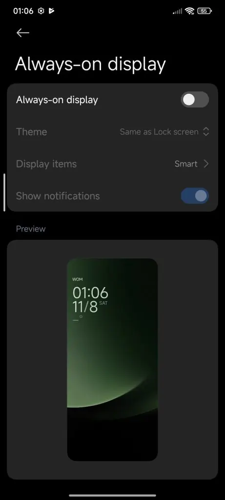 - iOS-style Always-On Display